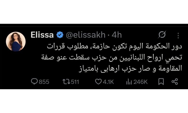 أدرعي يرد على الفنانة اليسا:سيدة إليسا! من المثير للاهتمام أن أراك اليوم تتبنين…