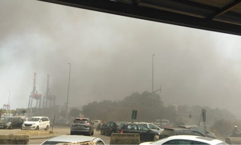 اندلع حريق كبير في محيط مرفأ بيروت، صباح اليوم الإثنين، تبين أنه ناجم عن اشتعال مواد بلاستيكية ونفايات مكدسة هناك.