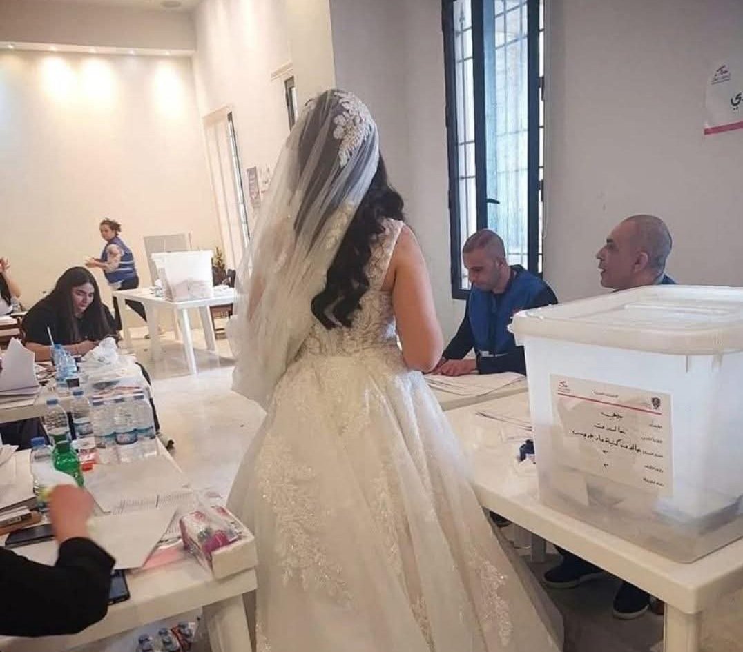 أدلت رانيا ضو بصوتها الانتخابي مرتدية فستان الزفاف في مشهد جمع بين الفرح المدني والفرح الديمقراطي، داخل صالون كنيسة مار جرجس .