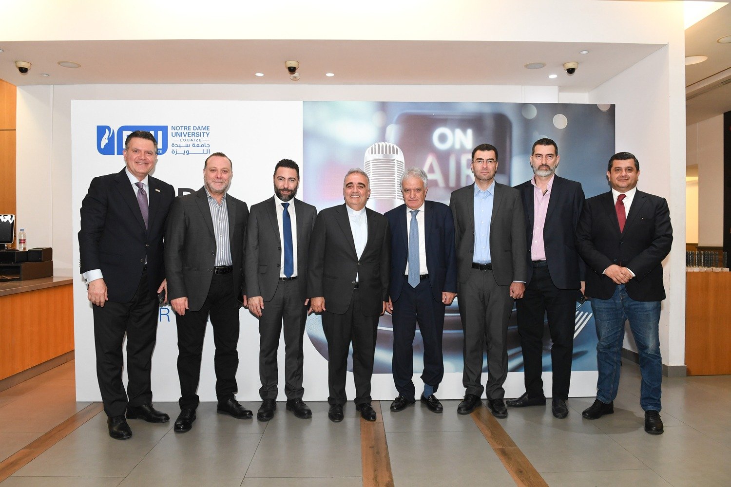 حضر اللقاء راعي الإحتفال معالي وزير الإعلام الدكتور بول مرقص، سيادة المطران أنطوان نبيل العنداري رئيس اللجنة الأسقفيّة لوسائل الإعلام، قدس الأباتي إدمون رزق الرئيس العام للرهبانيّة المارونيّة المريميّة ورئيس المجلس الأعلى للجامعة، الأب بشارة الخوري محاطاً بنوابه ومساعديهم، ومدراء الفروع، والعمداء، والمدراء، معالي الوزارء السابقين زياد بارود رئيس مجلس الأمناء في NDU، والإعلام: منال عبد الصمد، جورج قرداحي وزياد مكاري، السيّدة روز شويري رئيسة المؤسّسة المارونيّة للإنتشار، الأستاذ رفيق شلالا مدير مكتب الإعلام في القصر الجمهوري، المونسنيور عبدو أبوكسم مدير المركز الكاثوليكي للإعلام، الأب طوني خضرا رئيس إتحاد أورا والإتحاد الكاثوليكي العالمي للصحافة في لبنان، سعادة الدكتور جو مكرزل النائب الرديف في مجلس النواب الفرنسي، الأستاذ جاك كلاسي مدير عام تيلي لوميار ورئيس مجلس إدارة نورسات، العميد حسين غدّار مدير التوجيه في الجيش اللبناني، العميد بشارة أبو حمد مدير مكتب الإعلام في المديرية العامة للأمن العام، المقدّم أندريه الخوري مدير شعبة العلاقات العامة في قوى الأمن الداخلي، الإعلاميّة ربى الفرنّ المسؤولة الإعلامية في المديرية العامة لأمن الدولة، الأستاذ بسام أبو زيد رئيس نادي الصحافة، الصحافية رندلى جبور نقيبة العاملين في الإعلام المرئي والمسموع، الإعلاميّة القديرة سعاد قاروط العشّي، مستشاري الإعلام في الأحزاب اللبنانيّة، رؤساء ومدراء تحرير المؤسسات الإعلامية، المرئية، المسموعة، المكتوبة والإلكترونيّة، الصحافيون والإعلاميون، بالإضافة إلى وجوه إعلامية وصحافية، شخصيات روحيّة وعسكرية، أكاديمية واجتماعية، إلى جانب أسرة جامعة سيدة اللويزة.