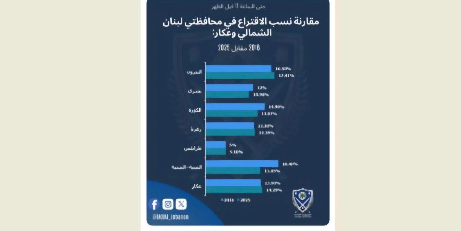 نشرت وزارة الداخلية نسب الاقتراع في محافظتي لبنان الشمالي وعكار حتى الساعة 11 قبل الظهر مقارنة مع العام 2016.