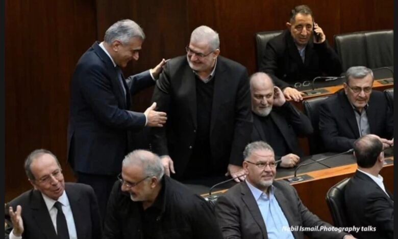 مصافحة لافتة بين محمد رعد وسليم الصايغ في مجلس النواب اليوم